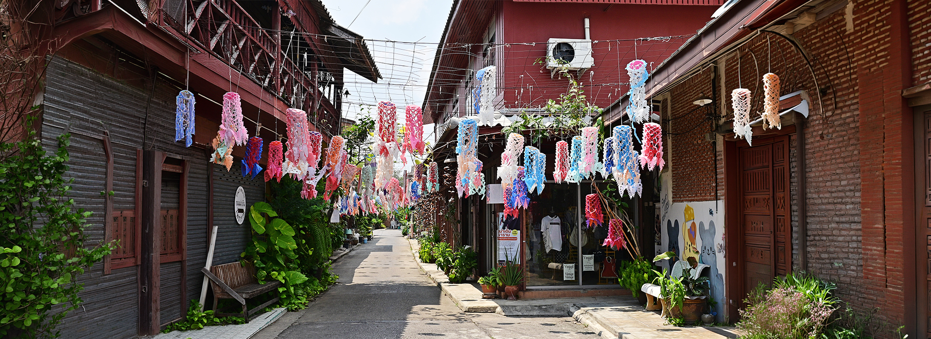 One of the most distinctive elements in town: “Phuang Mahot” — traditional Thai decorative paper hangings, often used in auspicious ceremonies such as ordinations, weddings, and religious events